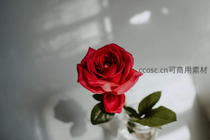 单支红玫瑰在光影中的静谧之美