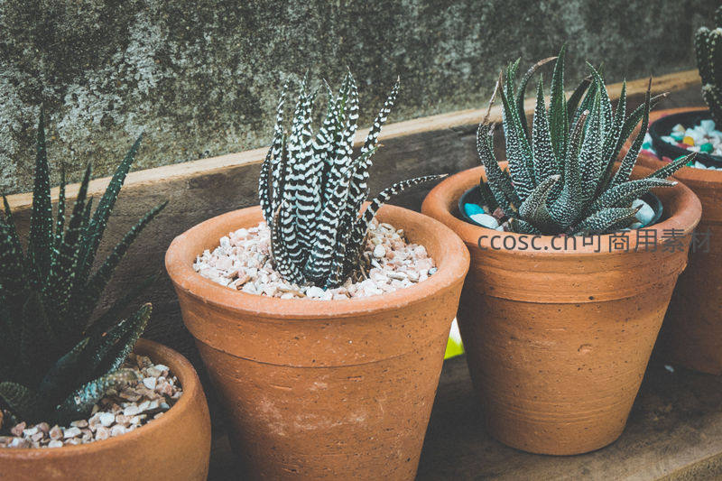 陶盆中的斑马纹多肉植物组合
