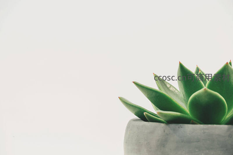 一株翠绿多肉置于灰色水泥花盆边缘,背景留白突出主体,展现极简主义风格与植物生命力的和谐统一。