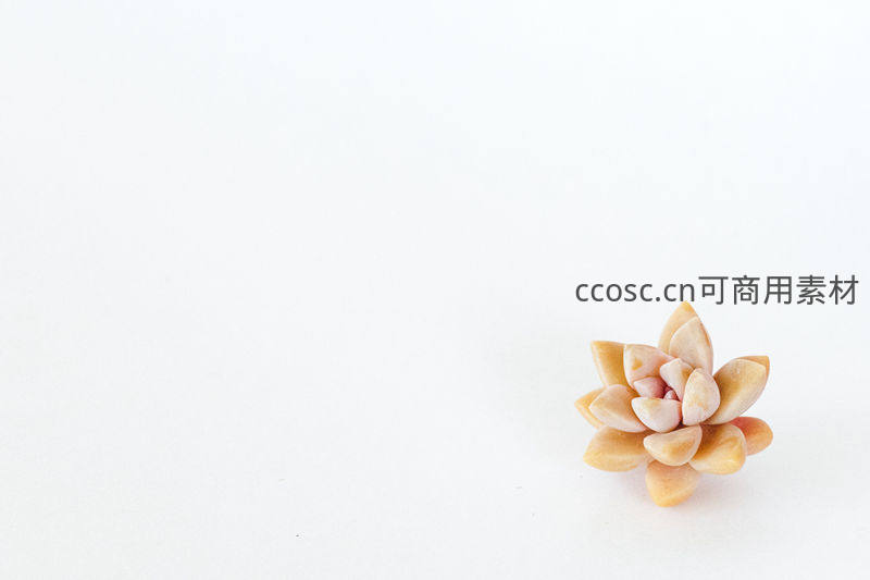 单株淡黄色多肉植物的极简留白构图