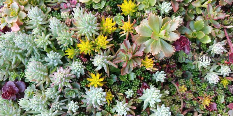 画面展示了一片色彩斑斓的多肉植物群落,绿、黄、粉交织,形态各异,充满自然野趣与蓬勃生机,宛如微型生态花园。