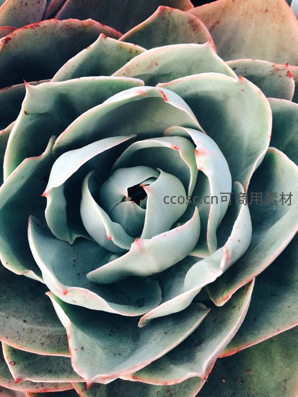 青绿色多肉叶片如玫瑰花瓣般螺旋排列,边缘点缀淡红,结构精巧,纹理清晰,是自然造物与家居美学的完美结合。