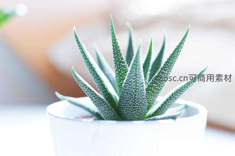 一株叶片尖锐、布满白色小点的多肉植物,在明亮光线下显得生机勃勃,置于纯白花盆中,展现其独特的纹理与形态。