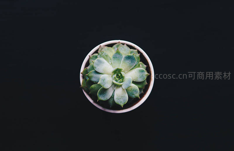 俯拍视角下的多肉植物盆栽