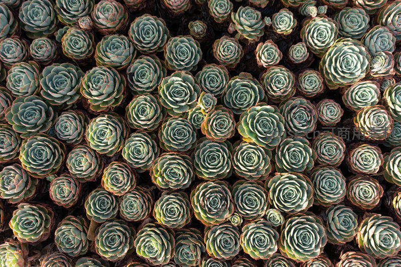 整齐排列的玫瑰状多肉群落