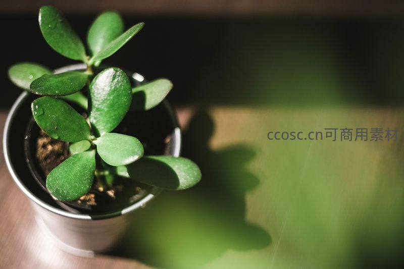 一盆小巧的玉树在柔和光线下显得格外青翠欲滴,叶片饱满油亮,背景虚化形成朦胧绿影,突显植物的静谧之美与蓬勃生机。