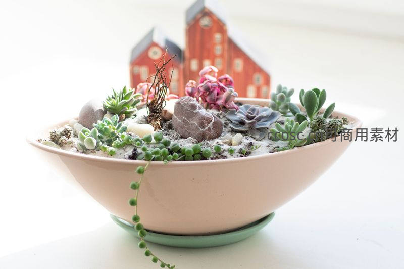 微型多肉花园里的童话小屋