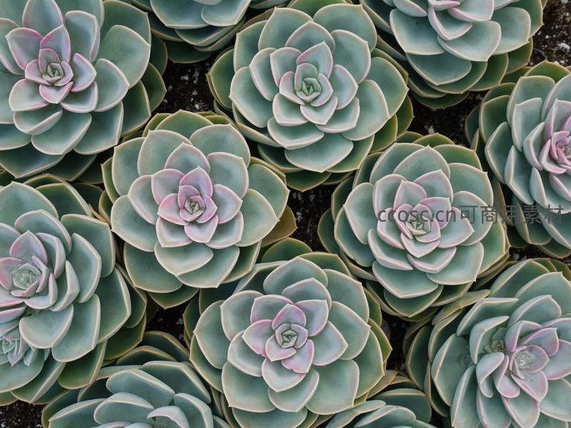 多肉植物群生特写,叶片层层叠叠如绽放花朵