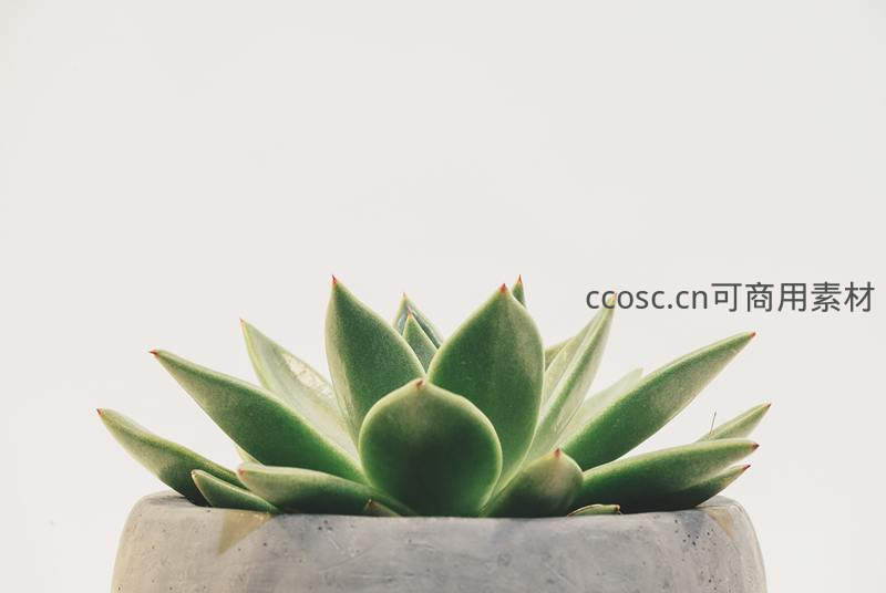 单株多肉静置于水泥盆中,简约背景突出自然之美