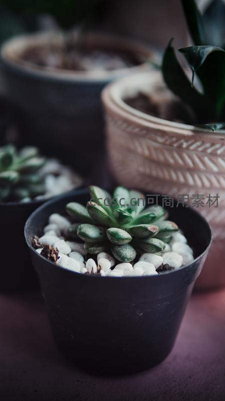 黑色花盆中的多肉植物特写