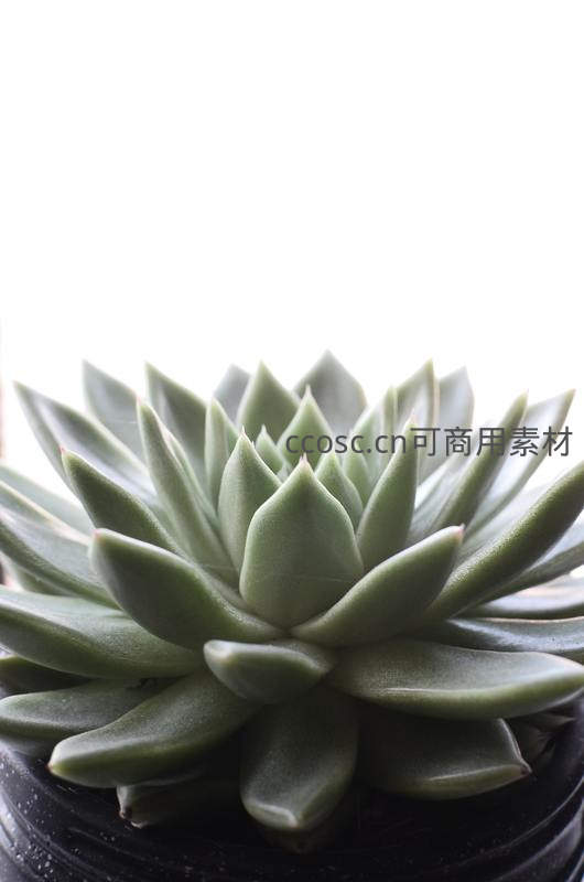 一株灰绿色的多肉植物在纯白色背景下显得格外突出,其挺拔的叶片形态和柔和的光影过渡,勾勒出一种纯净而优雅的美感。