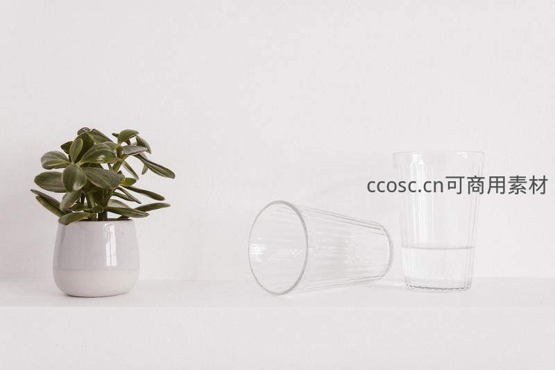 极简风玉树与玻璃杯静物