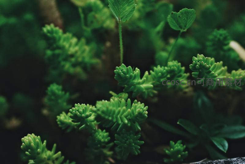 通过微距视角捕捉到一片茂密的绿色景天科植物,叶片层叠,充满生命力,背景虚化突出主体的细腻纹理与自然之美。
