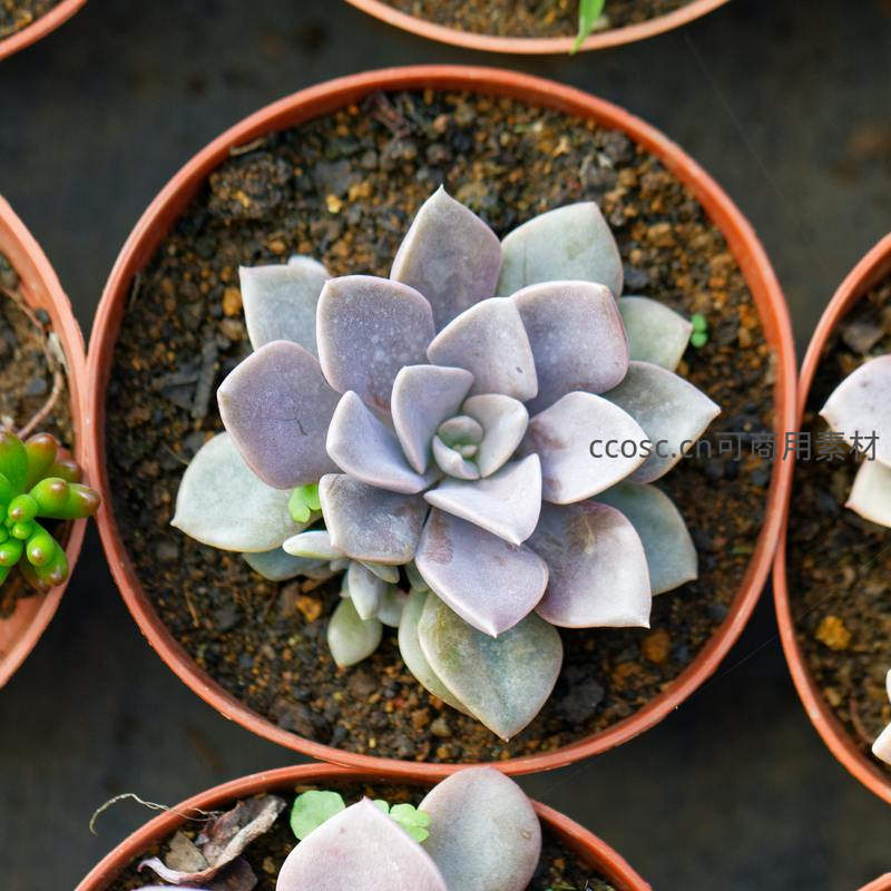 俯拍紫色多肉植物盆栽