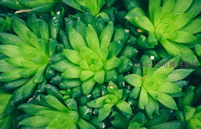 俯拍视角下密集生长的绿色多肉群