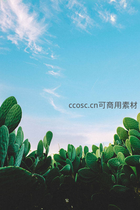 仙人掌丛与蔚蓝天空,构成清新自然画面