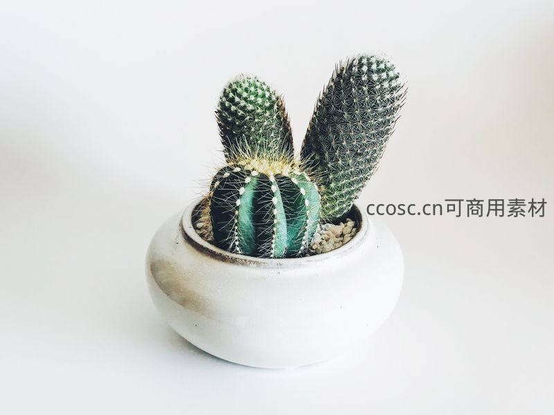 三株形态各异的仙人掌共同种植在一个质朴的白色陶盆中,高低错落有致,为简约空间增添一抹自然清新的绿意与趣味。