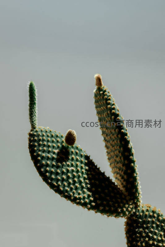 镜头聚焦于一株仙人掌的扁平叶片,其表面密布细小的绒毛与刺座,在柔和光线下呈现出独特的质感与纹理,展现微观世界的奇妙。