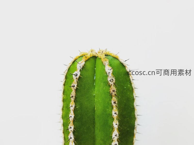一张仙人掌顶部的微距特写照片,展示了其鲜绿的茎部和排列整齐的白色刺座,背景纯净,凸显植物的生命力与独特美感。