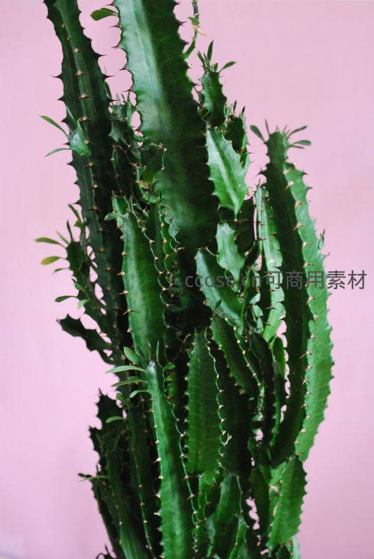 多根修长仙人掌在柔和粉墙前向上生长,展现出蓬勃生命力与现代家居中的自然野趣。