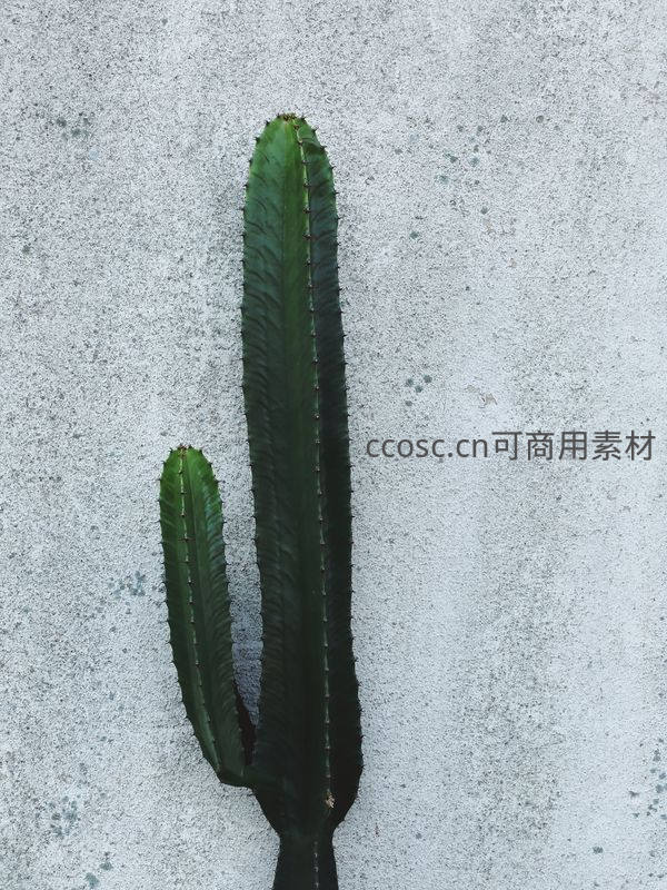 高大仙人掌倚靠水泥墙,工业风背景特写