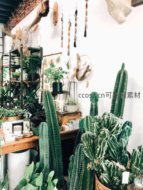 绿意盎然的仙人掌植物店角落