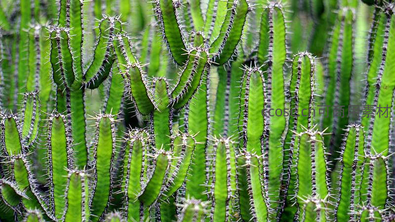 一片密集生长的高大仙人掌,其翠绿的茎干上布满尖刺,在阳光下显得生机勃勃,形成了一道独特而壮观的自然绿色屏障。