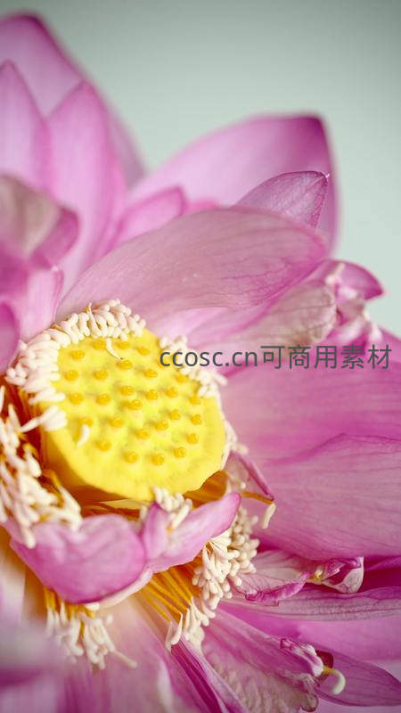 微距镜头捕捉到粉色荷花中心的细腻结构,金黄的莲蓬与洁白的雄蕊清晰可见,花瓣边缘柔美,展现了植物生命最精妙的细节之美。