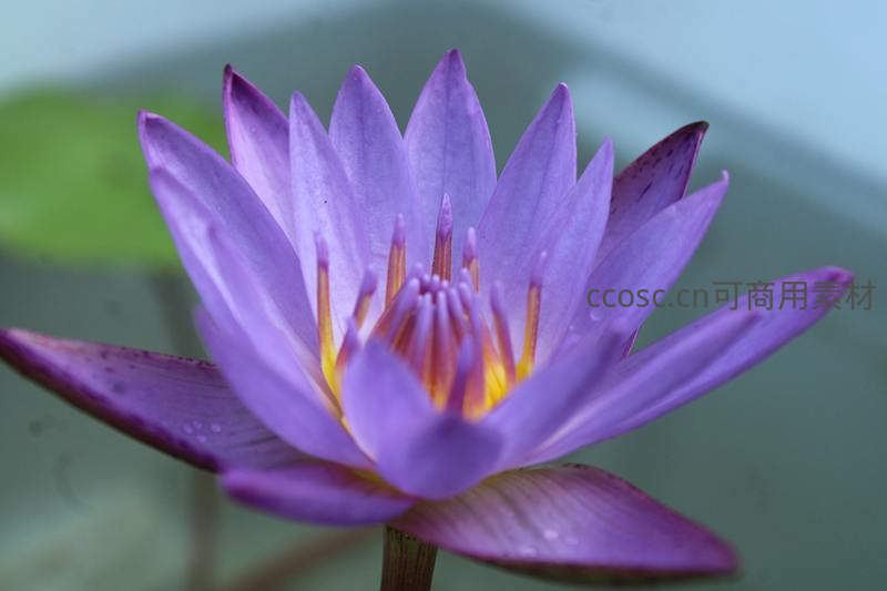紫色睡莲特写,花瓣上水珠晶莹剔透