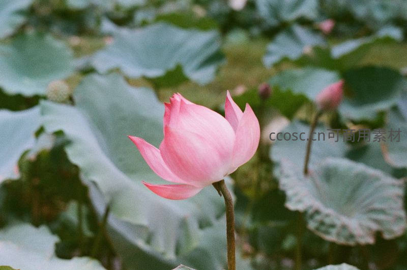粉嫩荷花亭亭玉立,绿叶环绕如画