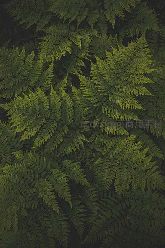 从高处俯瞰,大片蕨类植物如绿色绒毯般覆盖地面,光影交错间尽显原始森林的静谧与丰饶。