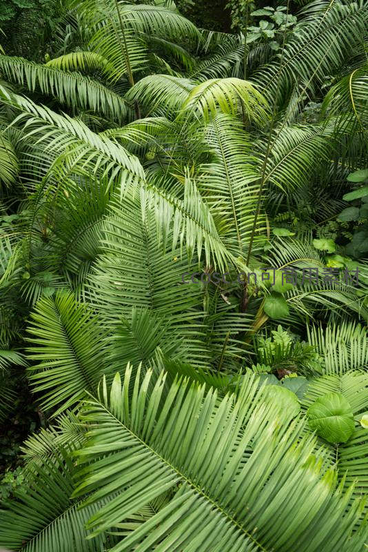 阳光穿透茂密树冠,照亮热带雨林中交错生长的棕榈叶与蕨类,展现出层次丰富、生机盎然的生态画卷。