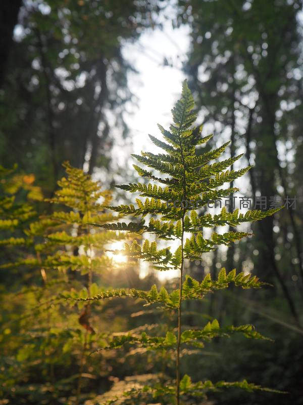 阳光穿透森林,蕨叶在光影中舒展