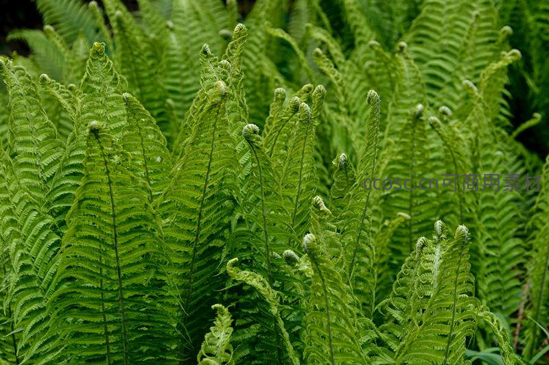 卷曲新芽破土而出,蕨类植物生命律动
