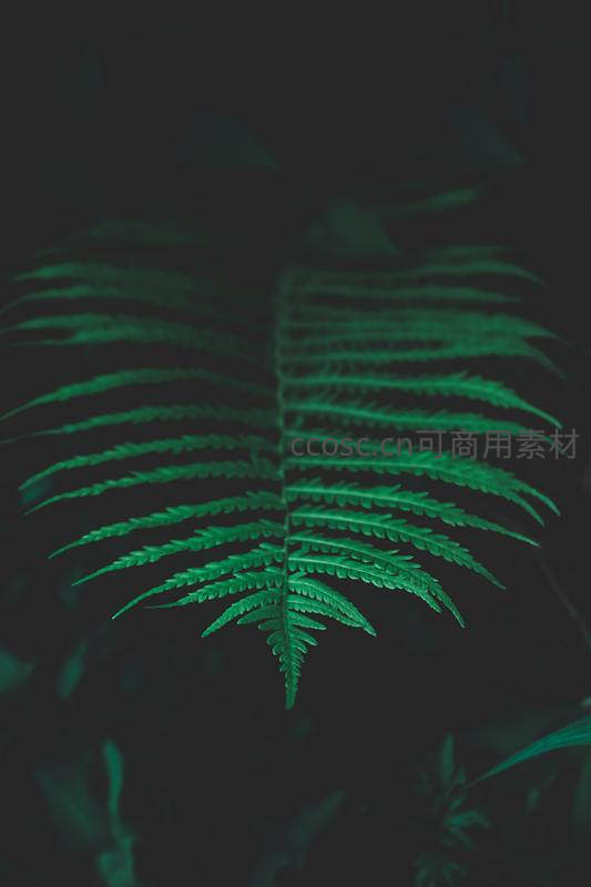 墨绿背景下孤寂的蕨叶