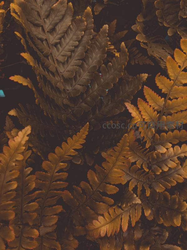 秋日枯黄的蕨叶,层叠交织成复古纹理