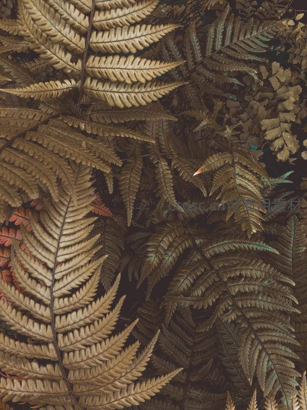 密集的干枯蕨叶堆叠,呈现大地色系美学