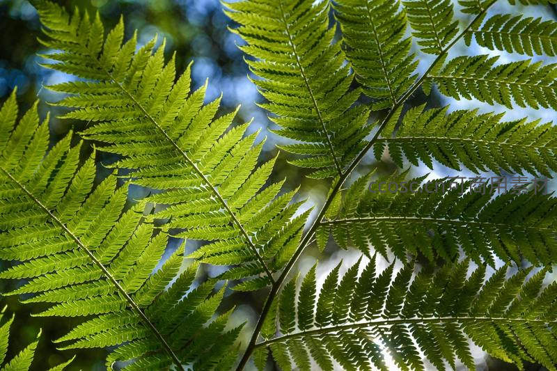 阳光穿透的蕨叶脉络分明