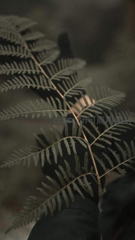 一双手持着蕨叶,背景虚化,光线柔和,营造出一种梦幻般的自然氛围,突出植物的优雅形态与宁静气息。