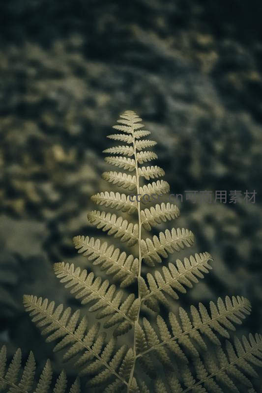 采用复古滤镜处理的蕨叶,呈现出温暖的棕绿色调,背景虚化突出主体,赋予画面一种怀旧而沉静的艺术美感。
