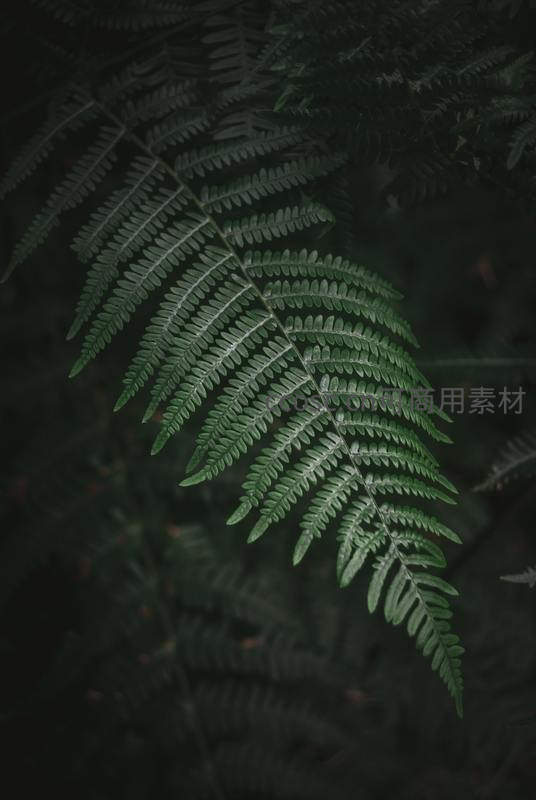 在柔和的暗光下,蕨叶的复杂结构和细腻纹理被完美捕捉,展现出自然界的精妙设计。