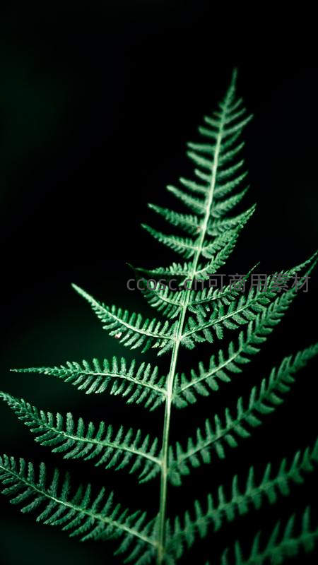 黑色背景下,一株蕨叶被光线穿透,叶片边缘泛着柔光,清晰呈现其复杂结构与生命质感,充满视觉张力与艺术美感。
