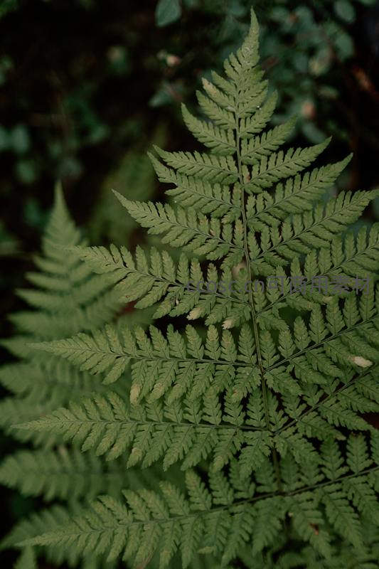一片翠绿的蕨类植物叶片在柔和光线下舒展,其精细的羽状结构和脉络清晰可见,背景虚化更显主体生动。