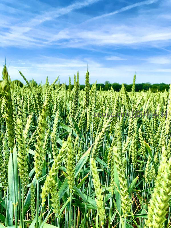 一片充满生机的翠绿麦田在晴朗的蓝天下延伸,嫩绿的麦苗随风摇曳,预示着新一季的丰收,洋溢着春天的清新与活力。