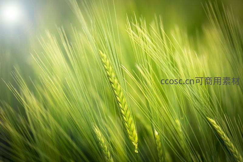 阳光穿透麦芒,绿穗闪耀着生命之光