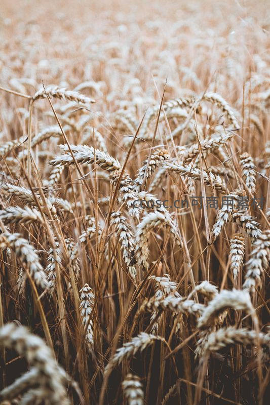 近距离捕捉成熟麦穗的细腻纹理与颗粒感,展现自然造物的精致与丰收的厚重质感。