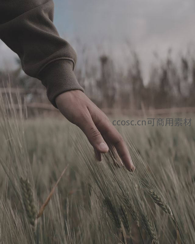 一只温暖的手掌温柔地拂过尚带青涩的麦苗,传递着对土地的深情与对即将到来的丰收的殷切期盼。