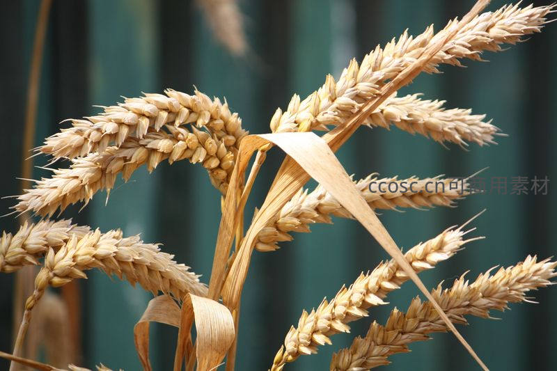 近距离捕捉几株沉甸甸的麦穗,每一粒麦子都清晰可见,展现了农作物成熟时的饱满与生命力,充满收获的喜悦。