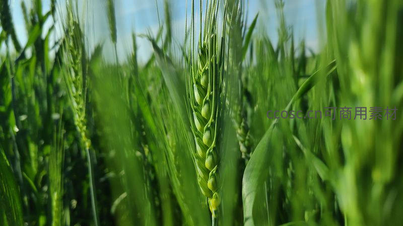 阳光透过叶片洒在青翠欲滴的麦穗上,每一粒麦粒都充满生命力,象征着春天的希望与农业生产的蓬勃朝气。