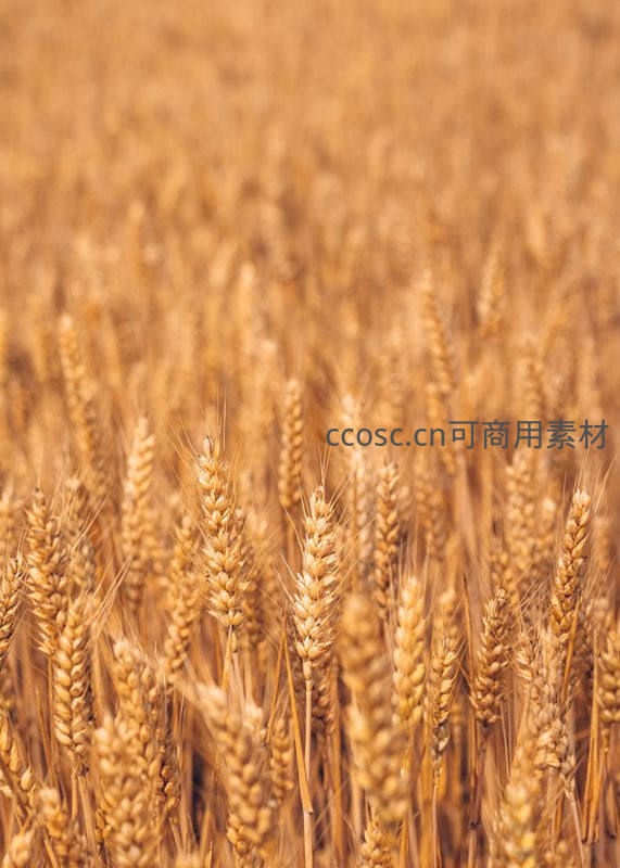 无边无际的金色麦田在阳光下闪耀,沉甸甸的麦穗预示着大丰收,构成一幅壮丽而宁静的田园画卷。